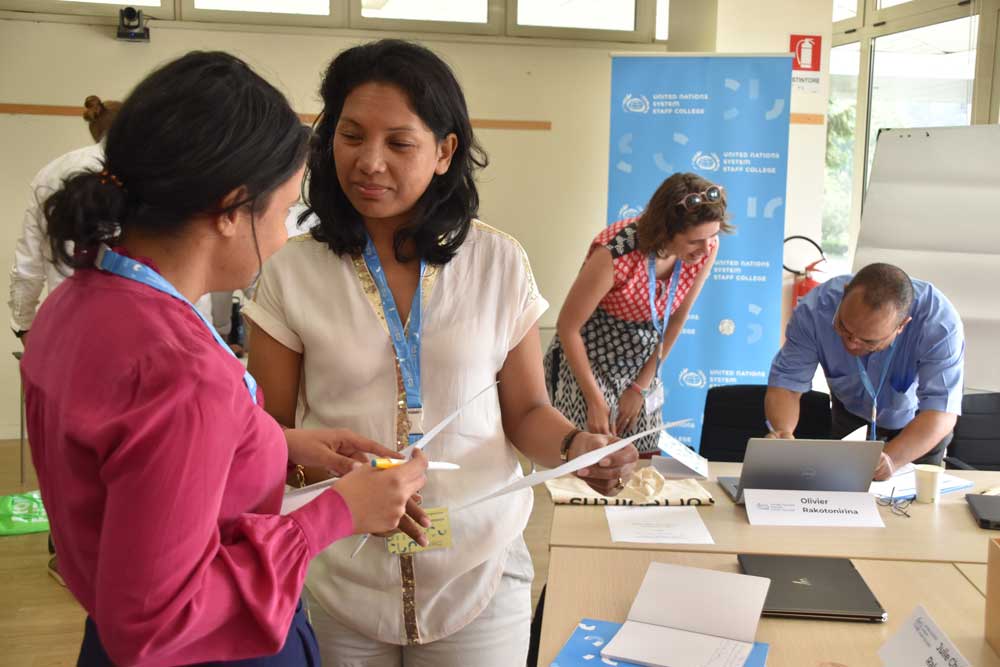 DPPA’s Peacebuilding Support Office (PBSO), together with the United Nations System Staff College, the Climate Security Mechanism, and independent think tank Adelphi, co-organized the Climate, Peace and Security Programming Training. This training which is a response to the findings of the PBSO’s newly launched Thematic Review on Climate Security and Peacebuilding 2023, provided an opportunity for participants to improve their programming capacity and project design for new national and cross-border peacebuilding projects being developed for the Peacebuilding Fund. Participants from UN agencies, funds and programmes in Guatemala, Haiti, Honduras, Madagascar, Mauritania, Niger, South Sudan, and The Gambia representing Food and Agriculture Organization of the United Nations (FAO), International Labour Organization (ILO), International Organization for Migration (IOM), Office of the High Commissioner for Human Rights (OHCHR), United Nations Capital Development Fund (UNCDF), United Nations Development Programme (UNDP), United Nations Educational, Scientific and Cultural Organization UNESCO, United Nations Environment Programme (UNEP), UN Women, World Food Programme (WFP) and the PBF Secretariat came together with their diverse expertise, experience, and perspectives, allowing for new and innovative ideas to emerge.